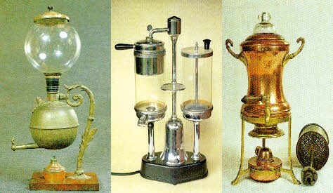 버큠포트 방식은 밀폐된 용기에 물을 담고 끓이면 끓는 물이 증기의 압력에 의해 다른 용기로 이동하게 되고 가열을 멈추면 압력이 떨어지면서 다시 원래의 용기로 복귀하는 원리를 응용한 것으로 당시로서는 획기적인 발명이었다. 드립에 비해 추출력이 강할 뿐만 아니라 시각적 효과도 그만이어서 선풍적인 인기를 끌었다. 방식은 다르지만 증기압을 이용한다는 면에서 그것은 이후 에스프레소 커피머신의 탄생을 예고하는 신호탄이기도 했다.